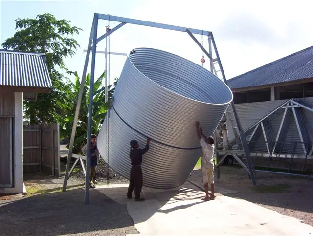Responding to the destruction of over 75% of buildings in Timor Leste, following its vote for independence in 1999, the Rotary Clubs of Doncaster, 9810, Melbourne, 9800, and Lilydale, 9810, set up a factory to produce corrugated steel roofing, water tanks and seed silos in Baucau, the second city of Timor Leste. The aim was to provide humanitarian aid with safe shelter, improve living conditions, rehabilitate the resistance fighters and help start an economy. The earlier projects were financed by Australian Rotary Clubs. Later it became a financially viable enterprise with contracts from government and private business. All profits were used for the benefit of the East Timorese people. Roofing was provided for over 50 schools, many community houses, orphanages, hospitals and clinics. Over 3,000 water tanks made it possible for young village girls to attend school instead of fetching daily household water needs. Water supplies and toilets for schools were a great help to hygiene. 1,000 silos enabled safe storage of seeds for the next year’s crop for many of the subsistence farmers. A centre adjacent to the factory, built with a generous grant from the Shell Sustainable Communities Foundation, trained over 250 East Timorese to a C4 level of basic building skills. A management committee in Melbourne oversaw the project for a full 18 years until its ownership was transferred to the Dom Bosco Order of Salesians, who ran a senior technical college in Baucau and who were capable of administering the project. They are continuing the humanitarian work and training. The factory is now titled Timor Roofing to conform to regulations.
